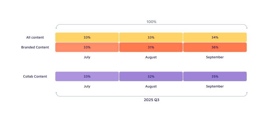 The launch of “Back to School & City” campaigns in September directly influenced both the pace of the season and the distribution of content formats. Alongside this shift, the increase in branded content—particularly the rise in post-format shares—reveals that September marked a period in which brands regained momentum and visibility within influencer marketing.